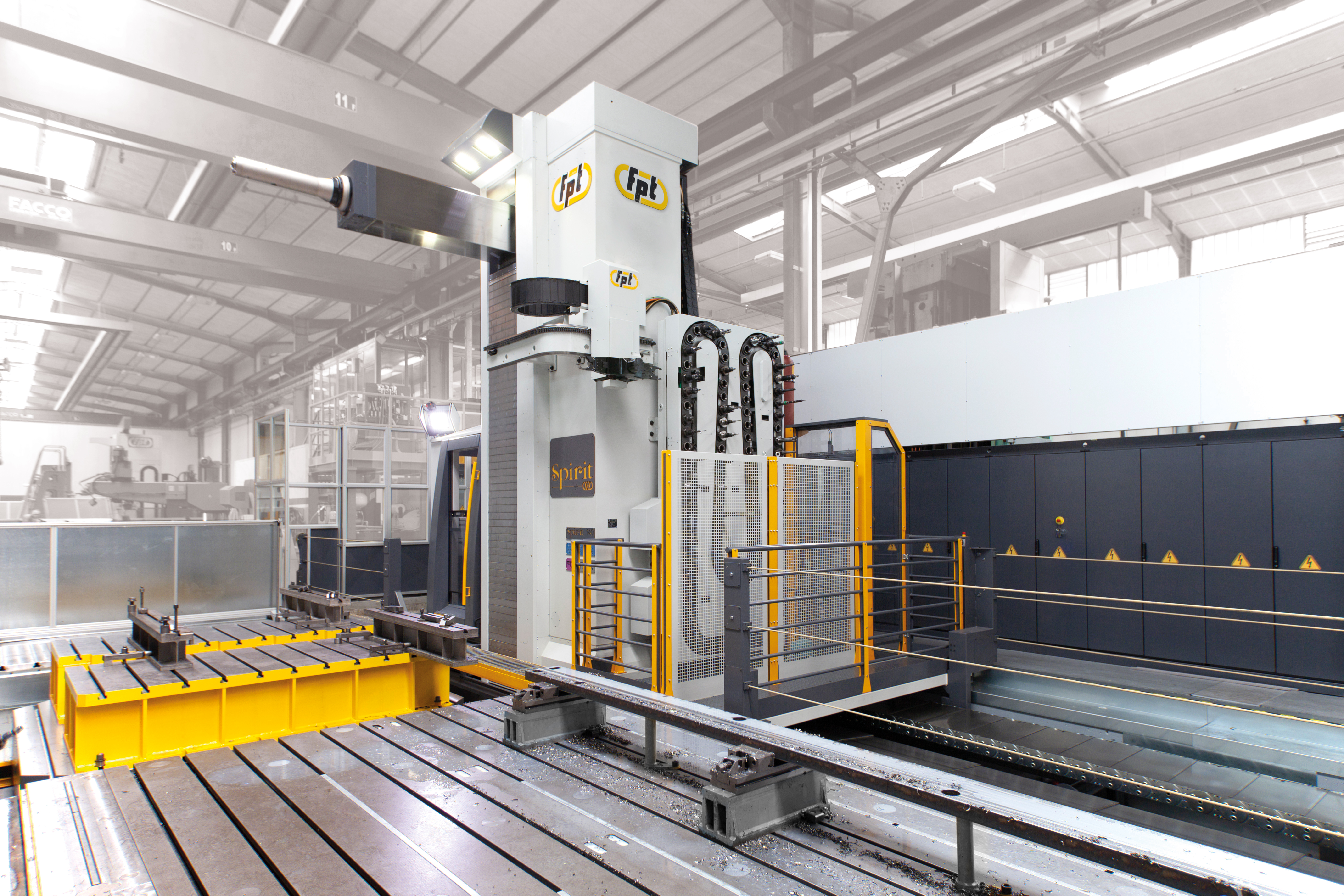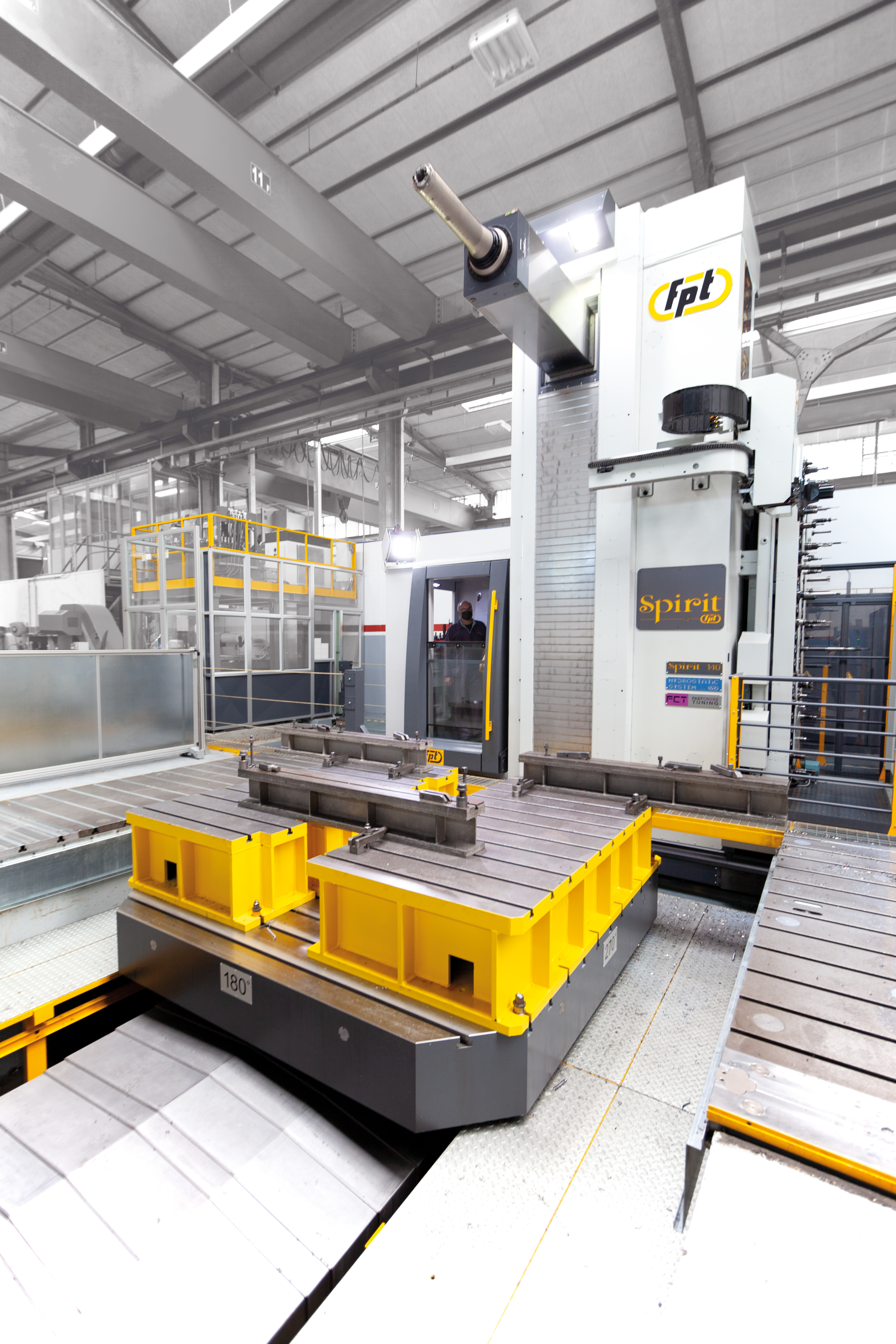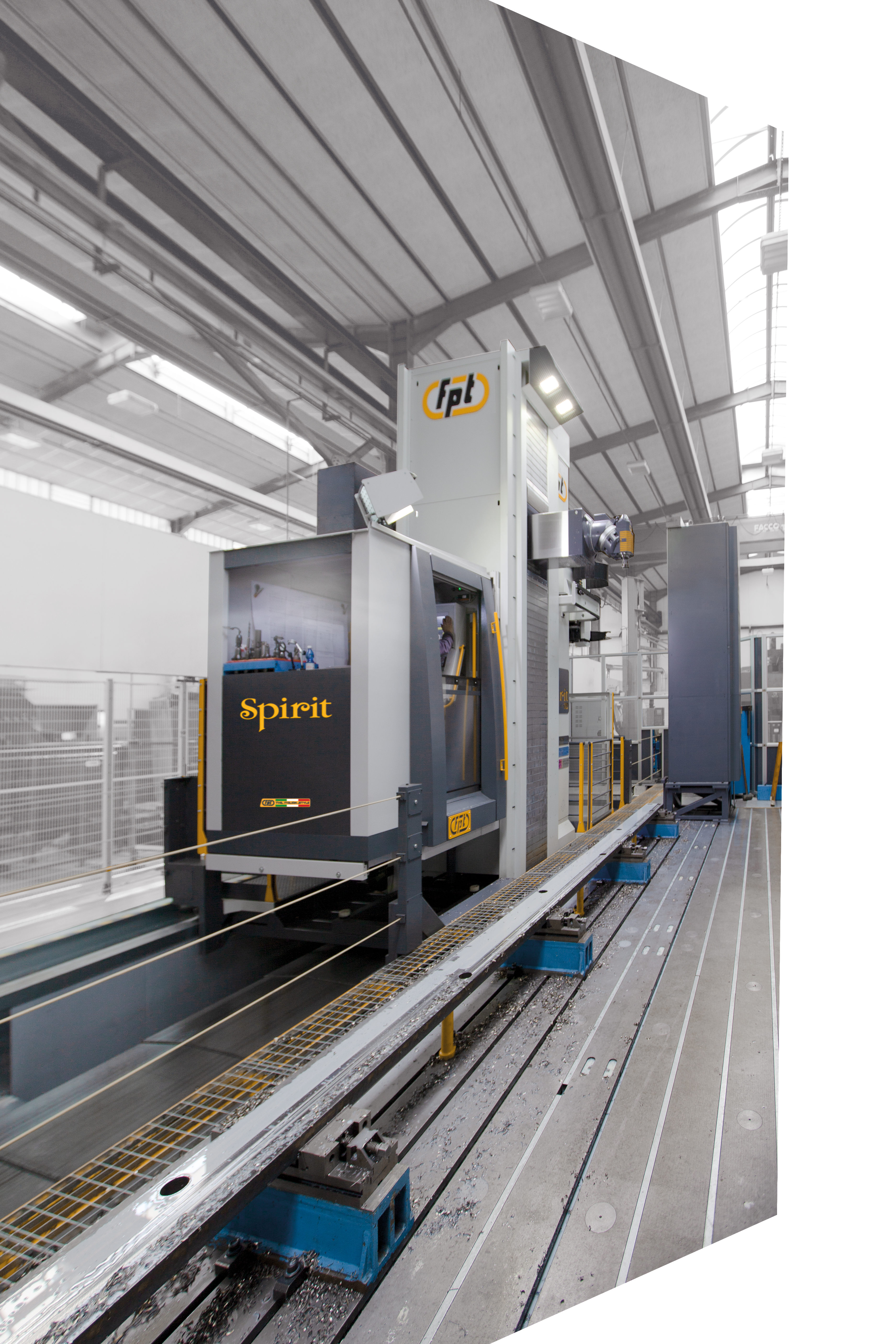 The FPT Spirit 100 is the high-capacity model of the Spirit series, designed to handle oversized and heavy components with uncompromising accuracy. Its hydrostatic guideway system ensures smooth motion and long-term precision, while the reinforced cast-iron structure provides the rigidity needed for extreme cutting forces. With a wide working envelope and high spindle power, the Spirit 100 offers manufacturers a reliable solution for the most challenging large-part machining tasks. Ideal For |