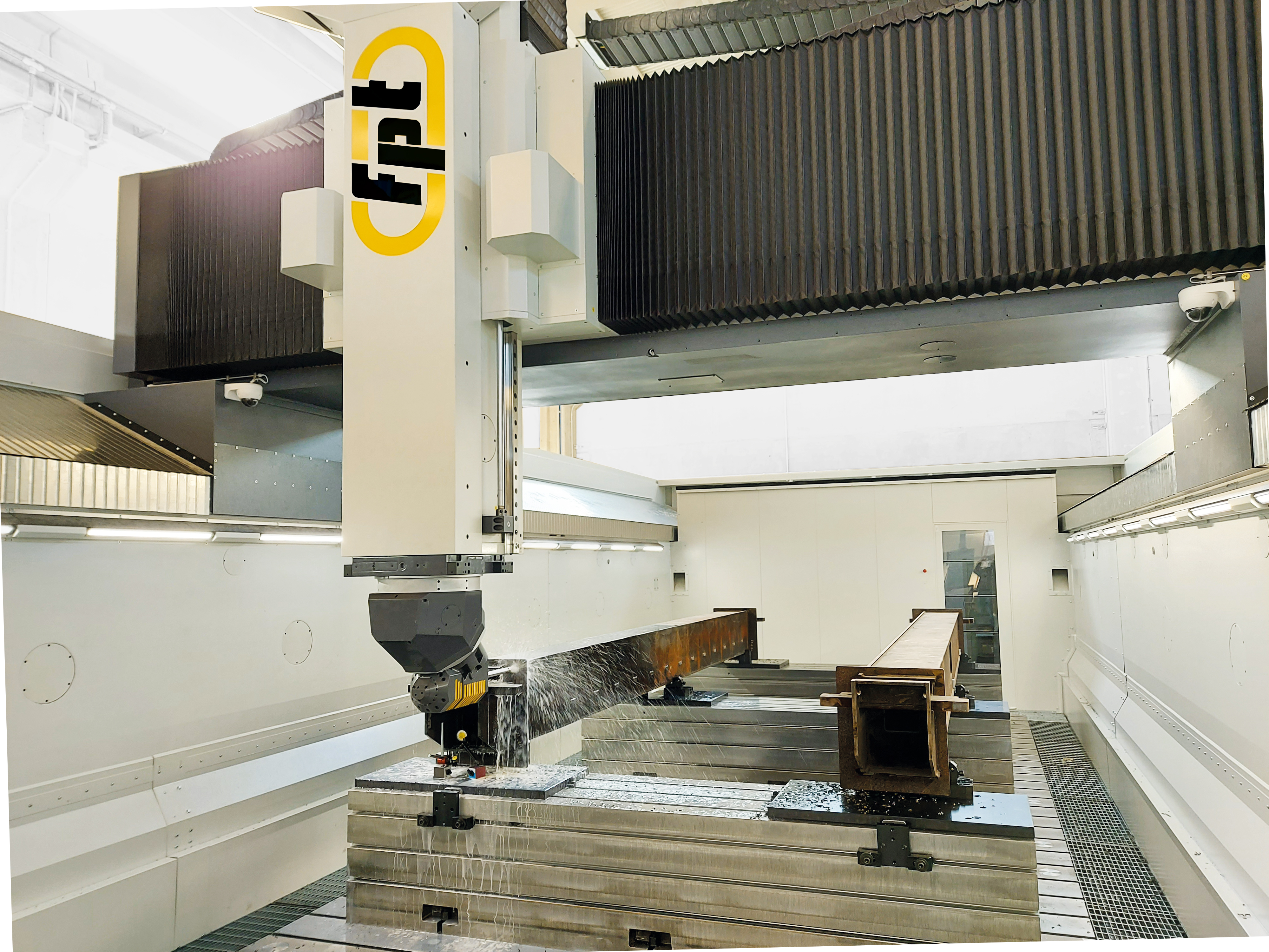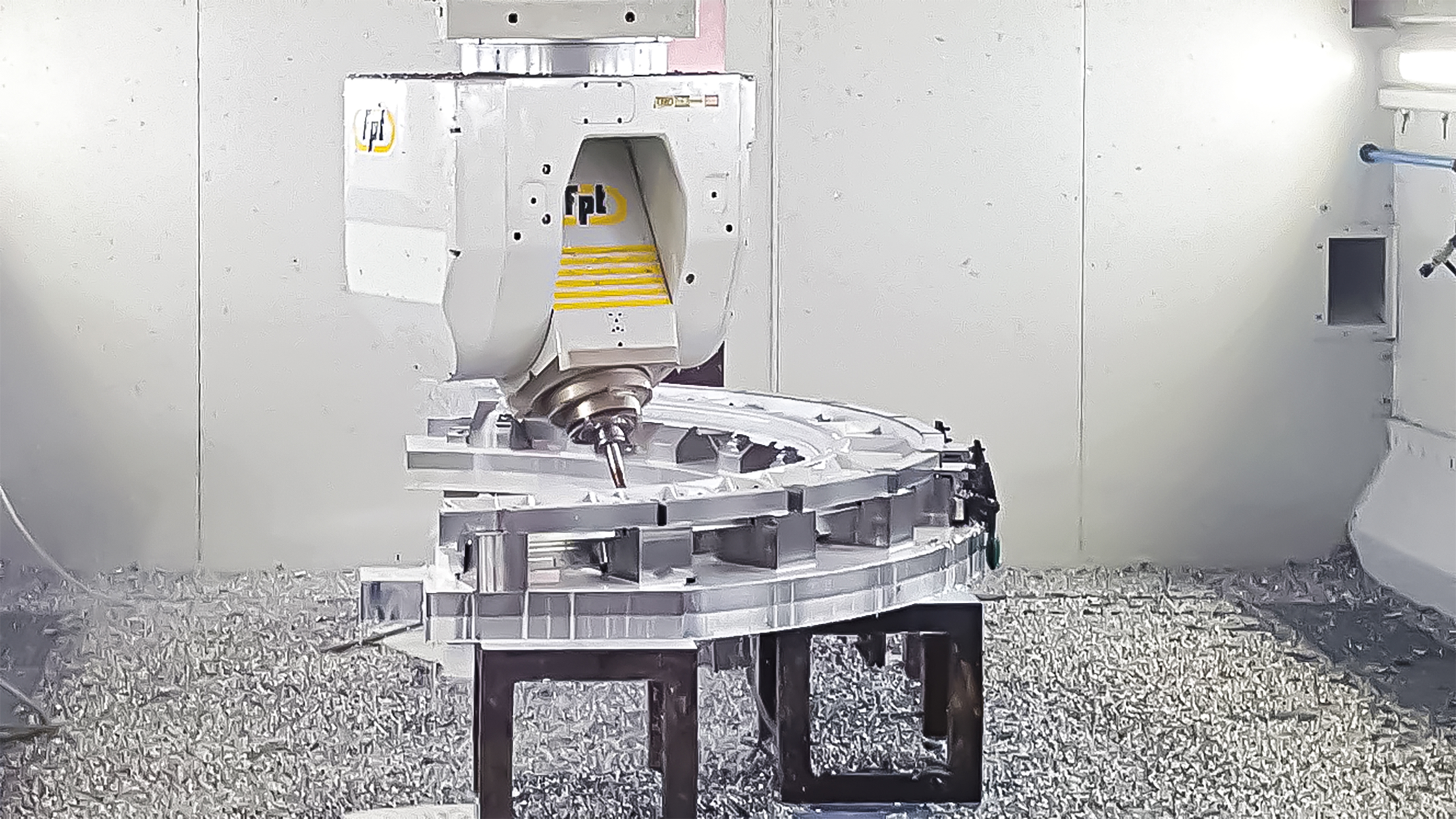 The FPT Dinox 350 IAT is a large-format vertical milling machine designed for 5-axis precision machining of oversized components. Featuring a gantry-type moving crossbeam architecture, the Dinox 350 IAT combines heavy-duty rigidity with high-speed performance, making it equally effective in roughing and finishing operations. Its IAT – Intelligent Active Thermal control system ensures dimensional stability by compensating for environmental and operational temperature variations. Ideal For |