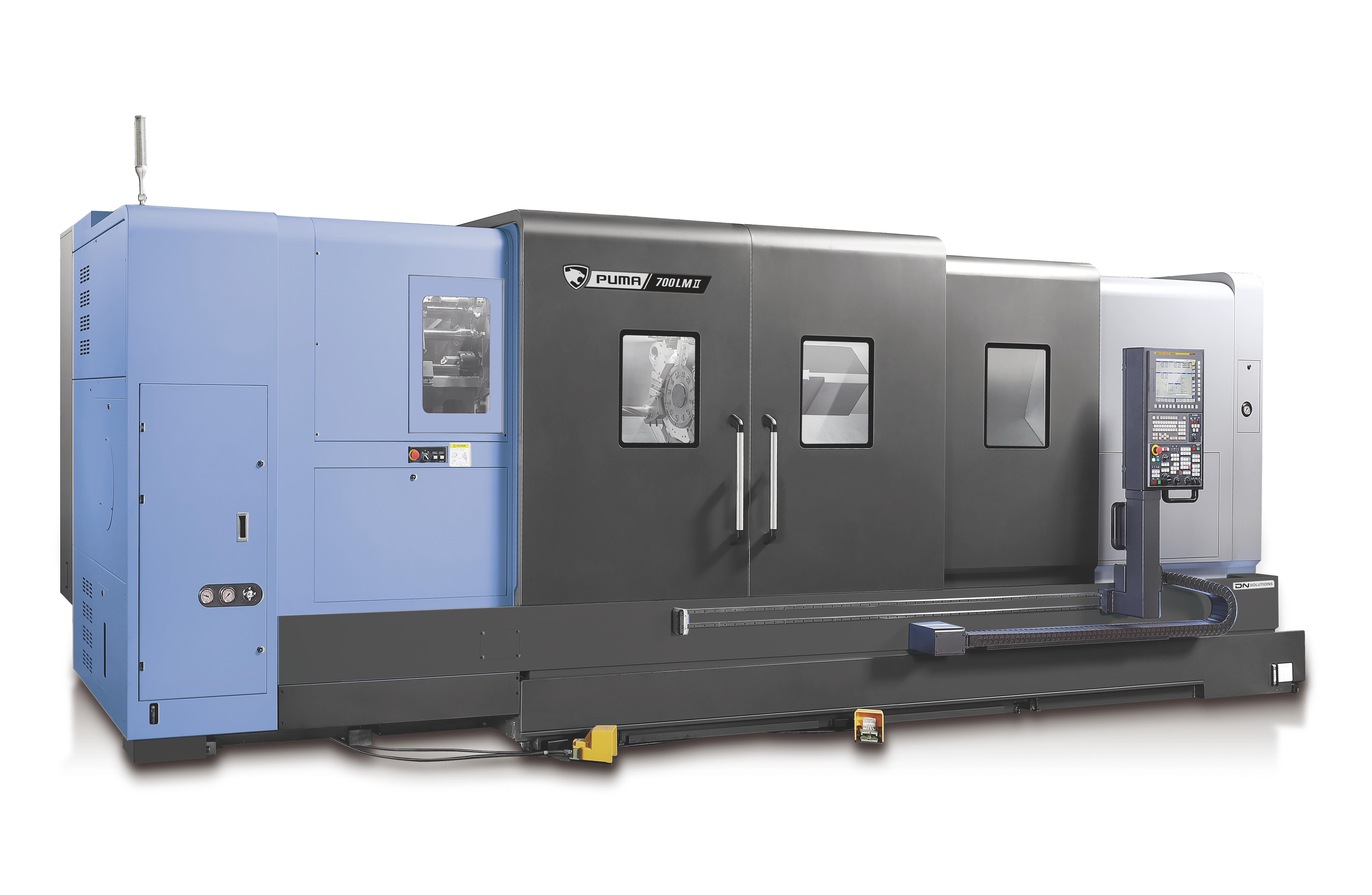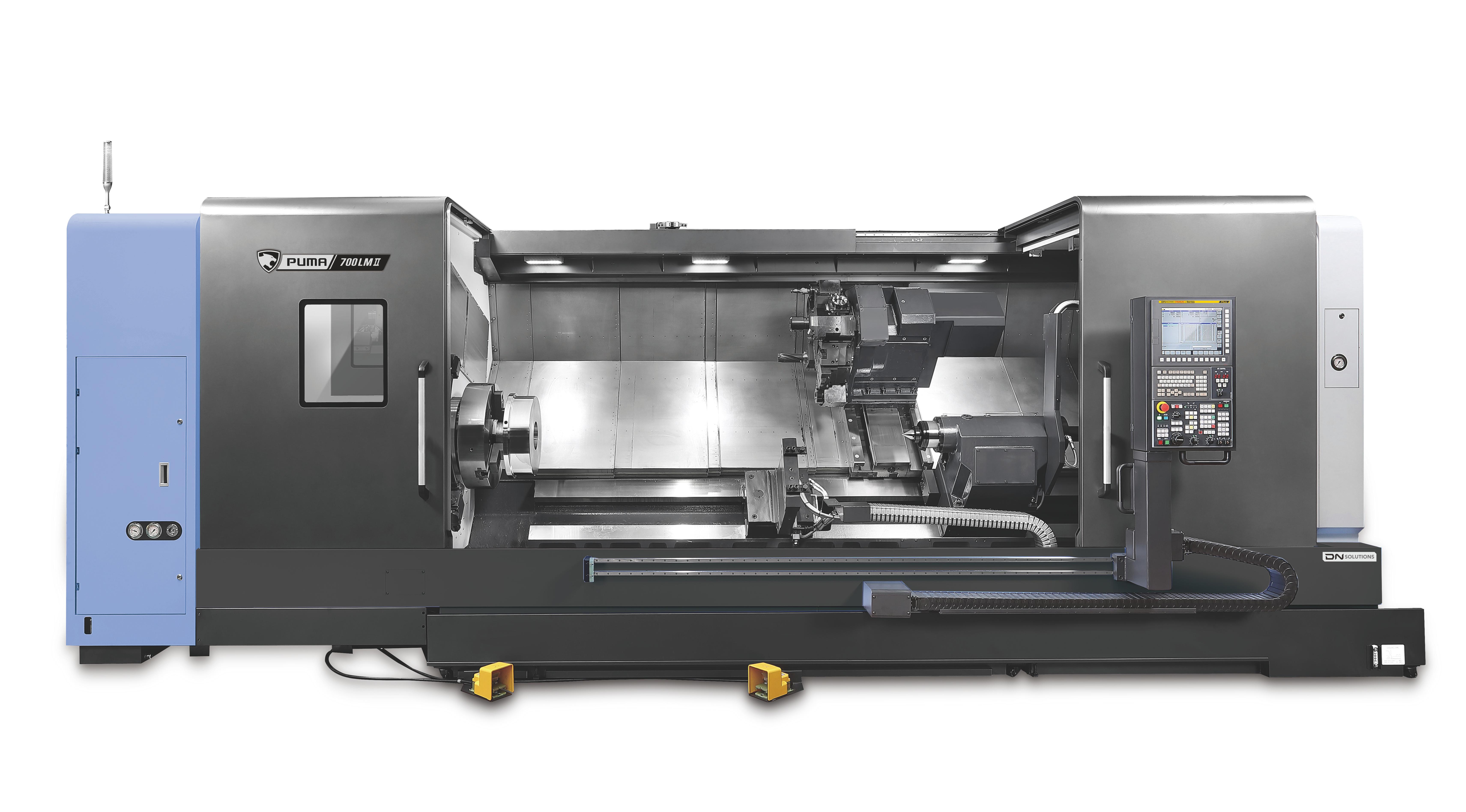 The PUMA 600/700/800 II series are large horizontal turning centers designed for machining substantial workpieces, such as pipes, valves, and flanges used in the oil and gas industry, hydraulic components for construction equipment, and complex parts for the aerospace and shipbuilding sectors. These machines offer impressive maximum turning diameters of Ø900mm (35.4 inches) and lengths up to 5050mm (198.8 inches), making them leaders in their class. The slant bed design facilitates efficient chip disposal, enhancing overall machining performance and convenience.